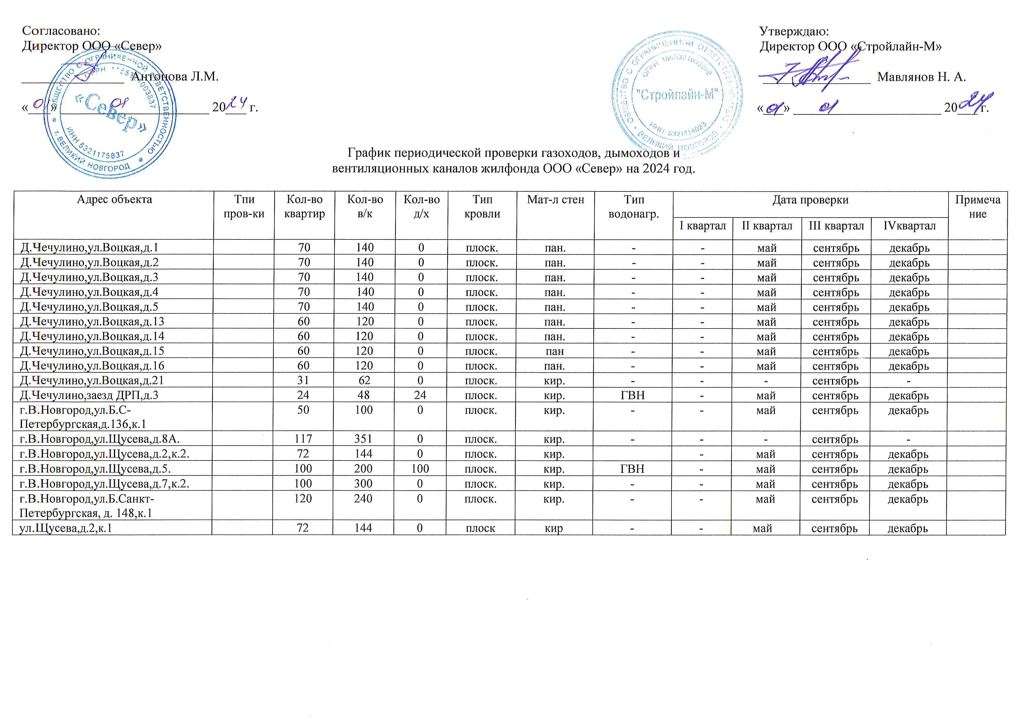 График проверки технического состояния вентиляционных каналов в 2024 г