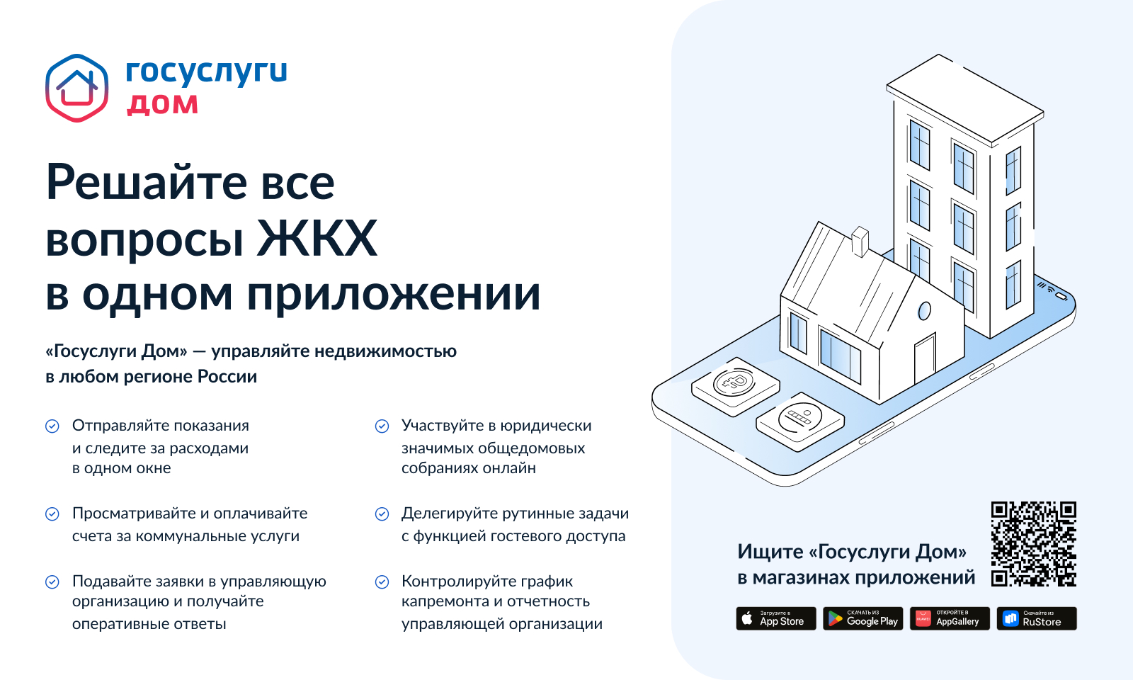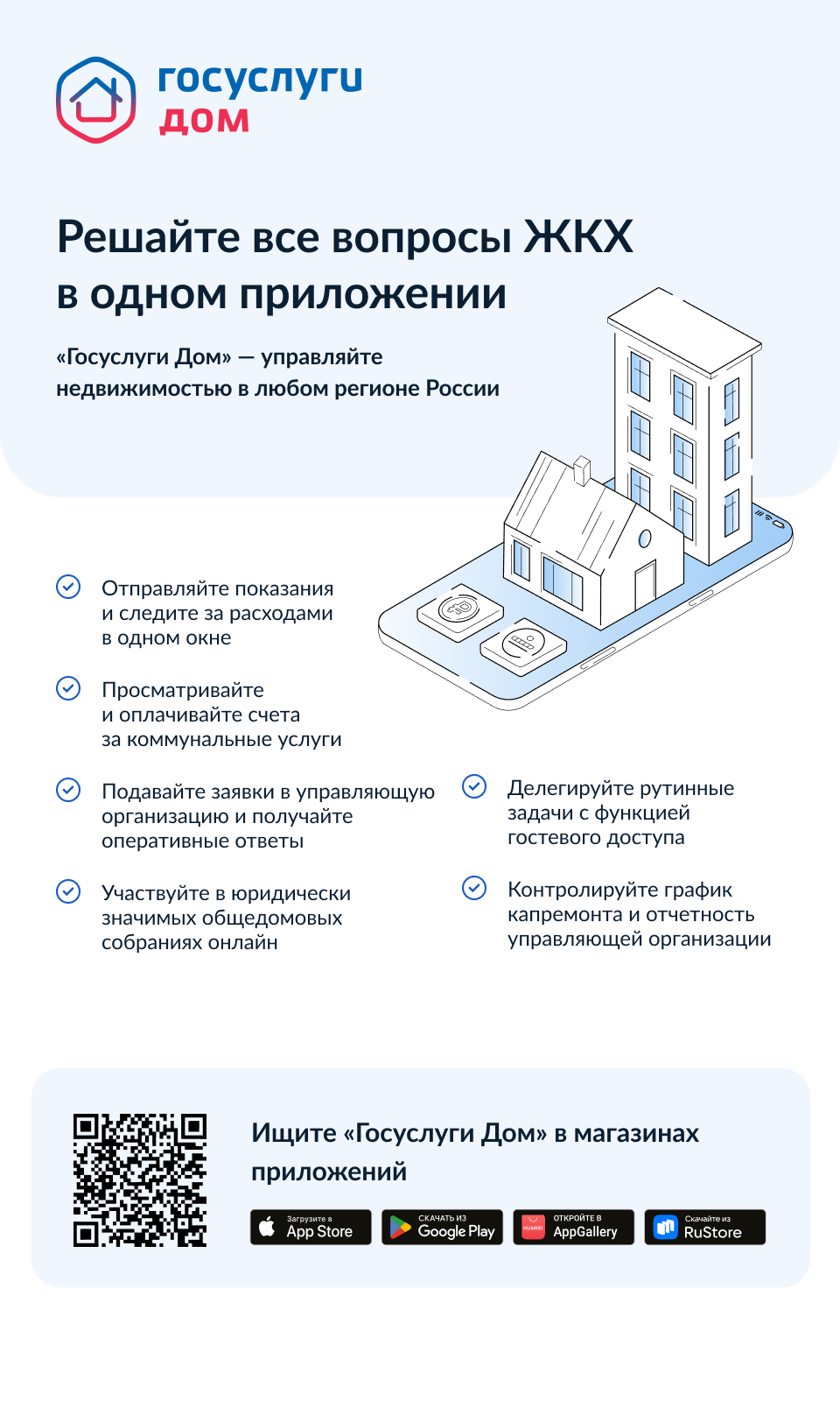 «Госуслуги Дом» – мобильное приложение, которое позволяет решить все вопросы ЖКХ в одном окне. Приложение создано на базе государственной информационной системы ЖКХ («ГИС ЖКХ»). Цифровое решение развивает АО «Оператор информационной системы» при поддержке Минстроя и Минцифры России. Приложение доступно для скачивания в RuStore, AppStore, Google Play и AppGallery. Более 11 млн россиян уже сделали установку.